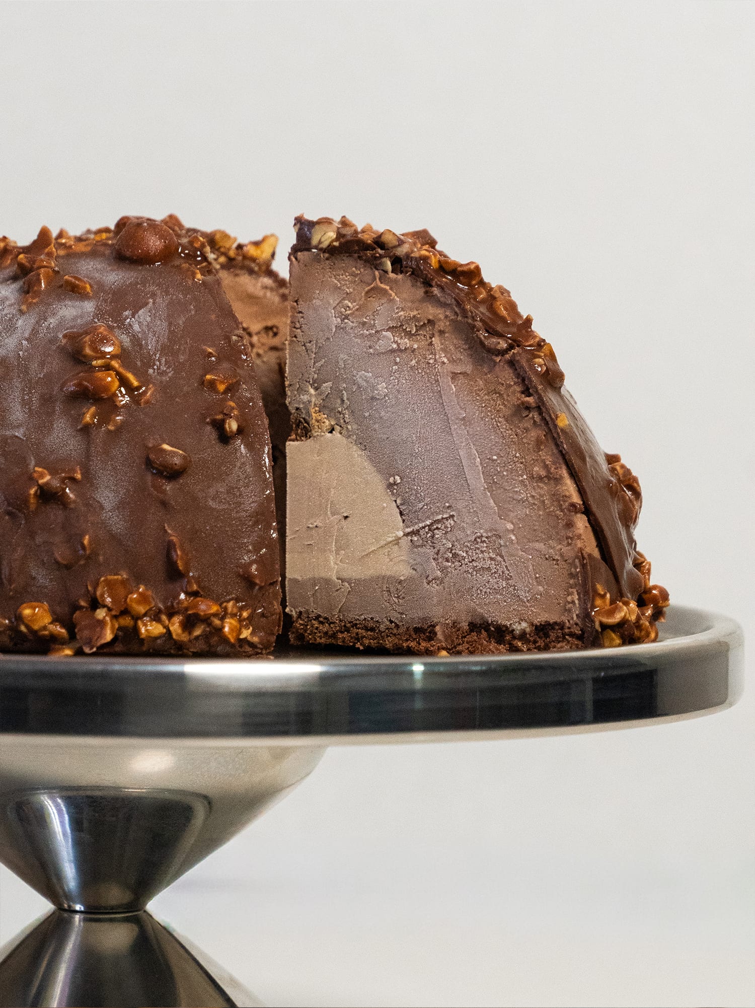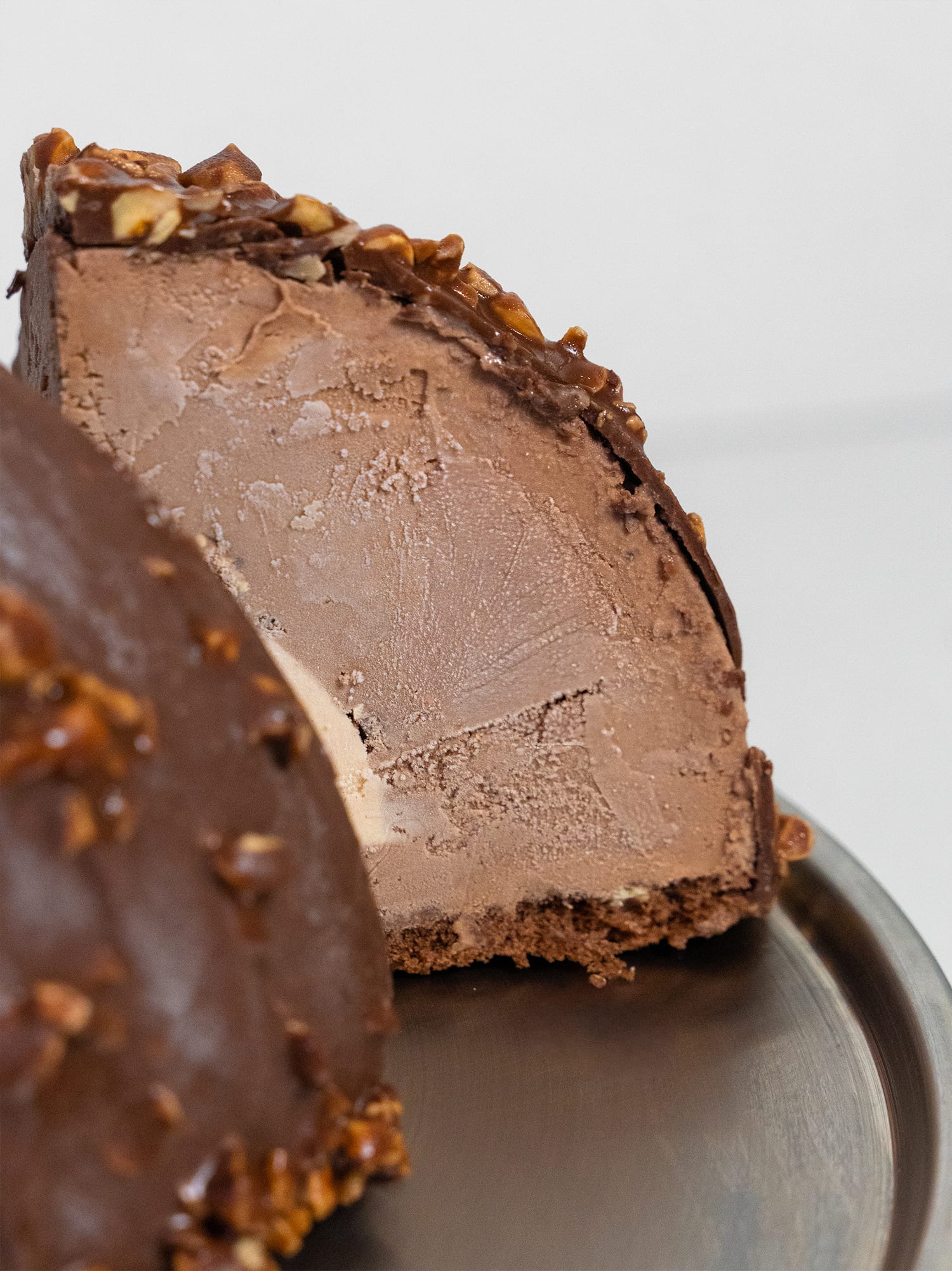 A rich indulgence inspired by the famous chocolate done Gelato Gemelli style. Coated in creamy milk chocolate with crunchy hazelnut pieces, this cake layers three gelato flavours: silky gianduia, smooth hazelnut, and decadent Nutella. All of this rests on a soft chocolate biscuit base for the perfect finish.